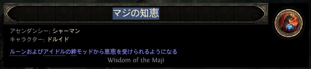実はこの「絆」オプション、新しく追加されたドルイドの上位職(アセンダンシー)である「シャーマン」専用の効果なんです。具体的には、シャーマンのパッシブスキルにある「マジの知恵」を取得したときだけ発動する特別なオプションです。