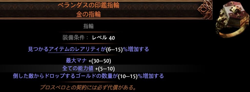 他にも「地域の知識」ノードや「ペランダスの印鑑指輪」(ゴールド獲得増加OP)を使う手もありますが、投資対効果を考えると微妙です。