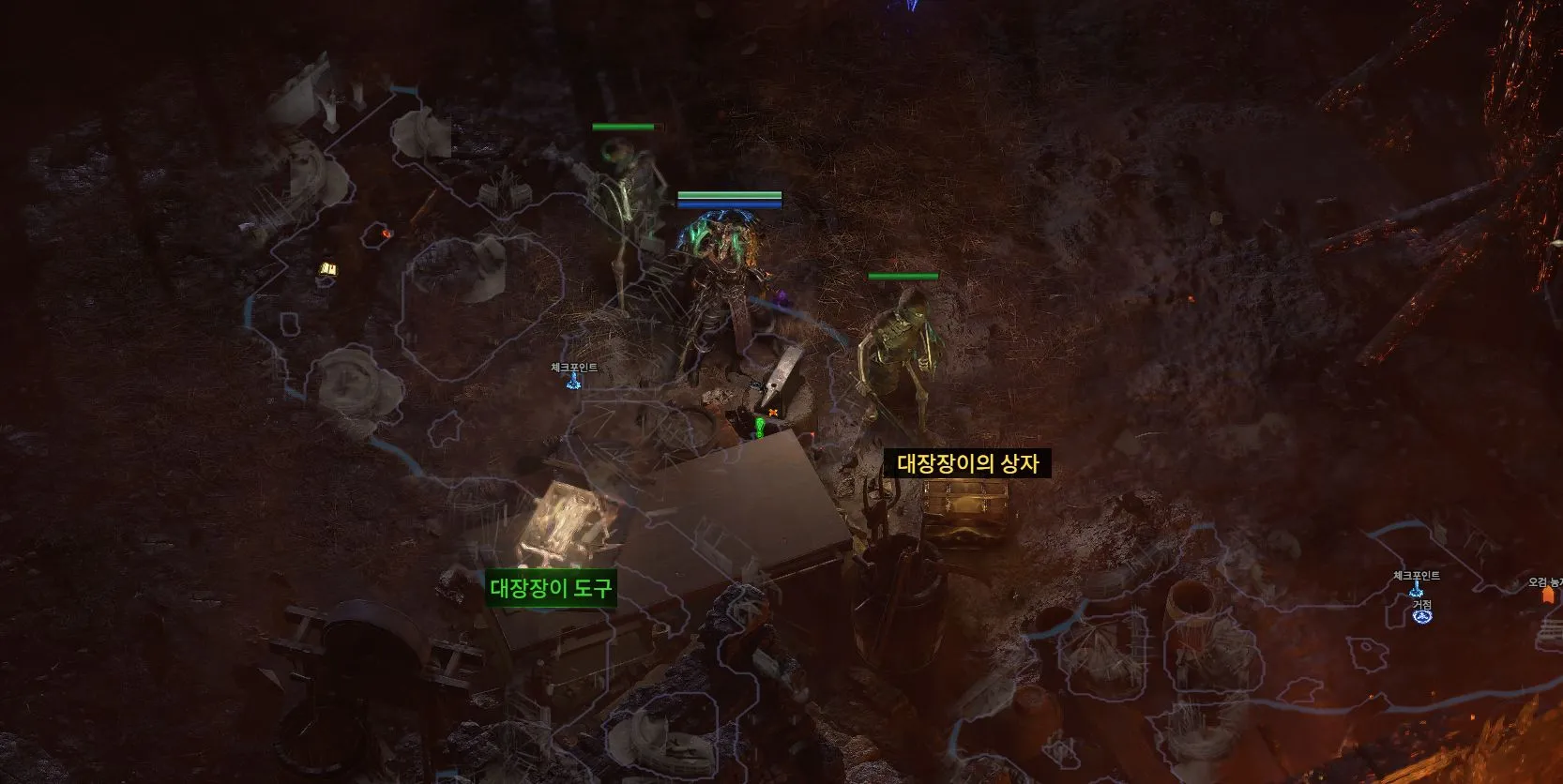 불타는 마을에서 대장장이 도구 획득 🎁 분해 작업대 해금 진행 중인 퀘스트: 대장간 찾기