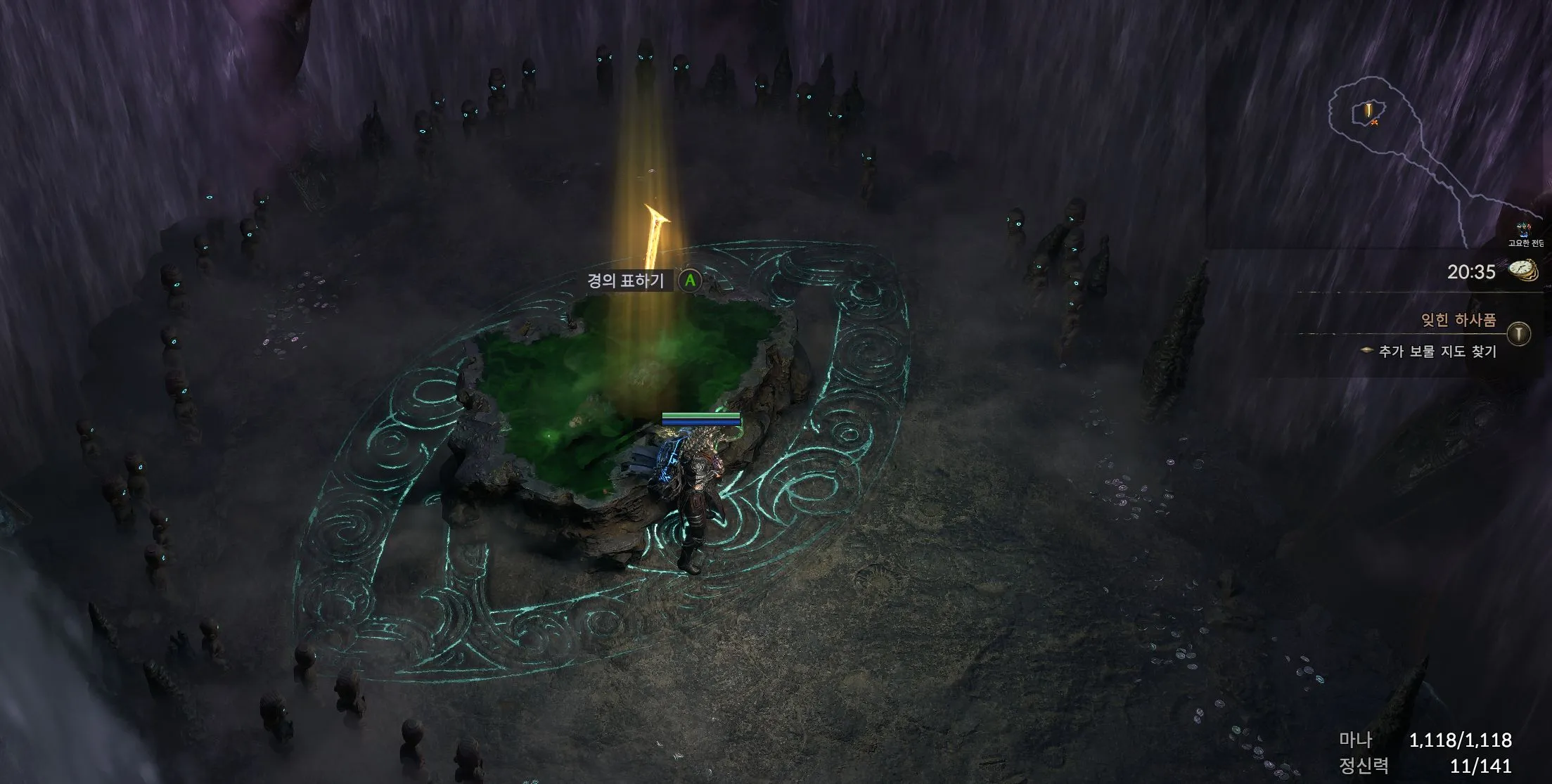 선택원형 투기장 찾기 ▷ 눈먼 짐승 처치 (보상: 상위 룬 1개)